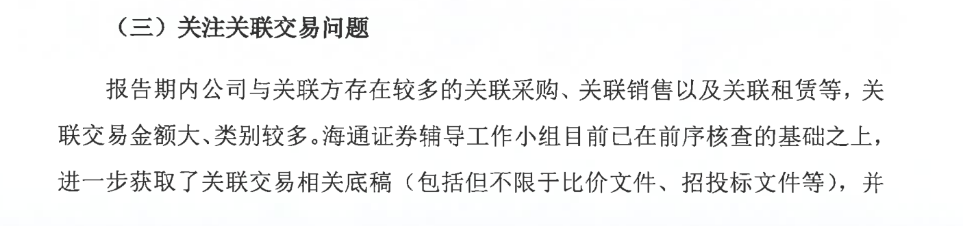 特别在关联交易问题中提到“报告期内公司(航特装备)与关联方存在较多的关联采购、关联销售以及关联租赁等,关联金额较大、关联类别较多。”