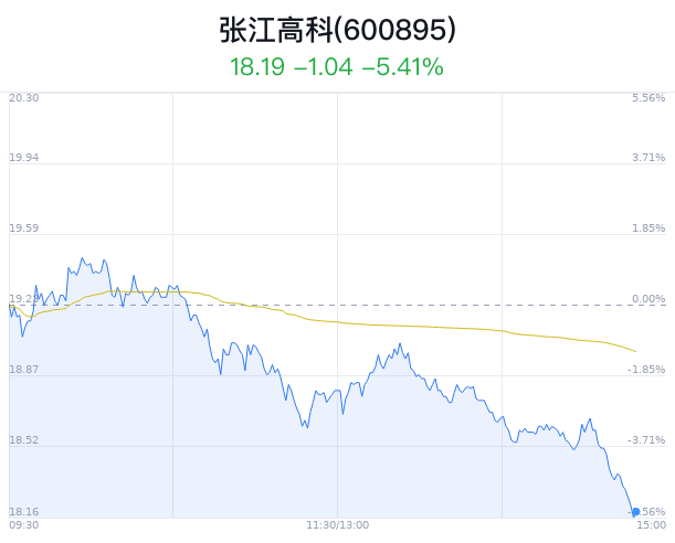 张江高科盘中大跌5.15% 主力净流出1.89亿元