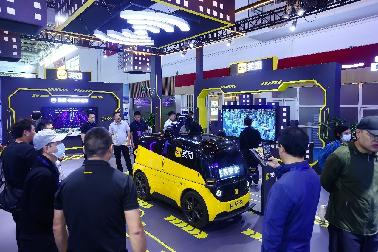 美团自动配送车参展2023世界智能网联汽车大会。图片来源:美团官网