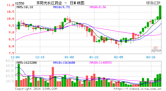 2024年03月01日下午盘13时00分,东阳光长江药业(01558.hk)股票出现异动,股价快速上涨5.11%。截至发稿,该股报10.721港元/股,成交量143.22万股,换手率0.22%,振幅7.06%。