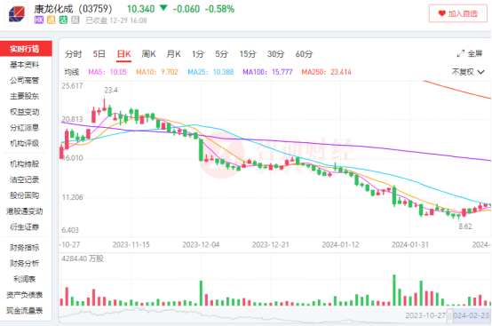 然而,在国内外多重超预期因素冲击的背景下,2023年港股CXO板块受创严重,康龙化成的股价随之一路下跌。如今这股下跌之势一路延续至2024年,且还在不断刷新康龙化成上市以来的股价新低。