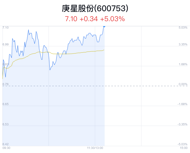 02月23日,庚星股份(600753)股价大幅上涨,截至13点11分,庚星股份上涨5.03%,报7.10元/股,成交3243万元,换手率2.17%,振幅4.73%。