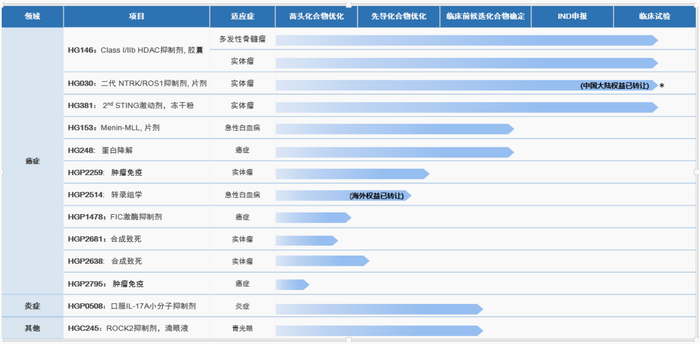 另一方面可提供不同阶段的新药项目权益转让,依托四大核心技术平台逐步丰富在研管线并推动更多项目进入临床阶段,目前该公司拥有近20个I类自研管线,多个项目处于临床I期。