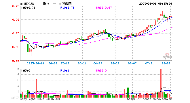 8月6日,医药卫生ETF(159938)开盘涨0.14%,报0.710元。医药卫生ETF(159938)重仓股方面,恒瑞医药开盘跌0.18%,药明康德涨0.00%,迈瑞医疗涨0.25%,联影医疗涨0.19%,片仔癀涨0.15%,爱尔眼科涨0.00%,云南白药涨0.00%,科伦药业涨0.45%,上海莱士跌0.14%,华东医药跌0.26%。