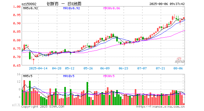 8月6日,创新药ETF(159992)开盘涨0.00%,报0.924元。创新药ETF(159992)重仓股方面,药明康德开盘涨0.00%,恒瑞医药跌0.18%,科伦药业涨0.45%,华东医药跌0.26%,长春高新涨0.04%,复星医药涨0.33%,泰格医药涨0.79%,信立泰涨0.00%,百济神州涨0.34%,通化金马跌0.22%。