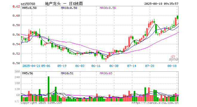 房地产ETF(159768)业绩比较基准为中证内地地产主题指数收益率,管理人为银华基金管理股份有限公司,基金经理为张亦驰,成立(2022-01-27)以来回报为-40.60%,近一个月回报为9.21%。