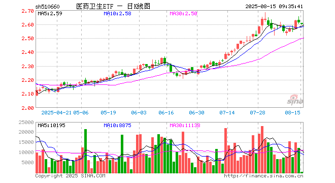 8月15日,医药卫生ETF(510660)开盘跌0.08%,报2.608元。医药卫生ETF(510660)重仓股方面,药明康德开盘跌1.15%,恒瑞医药跌0.29%,联影医疗涨0.00%,片仔癀涨0.00%,复星医药跌0.21%,百济神州涨0.02%,惠泰医疗跌0.02%,同仁堂跌0.39%,人福医药涨0.33%,百利天恒跌0.92%。