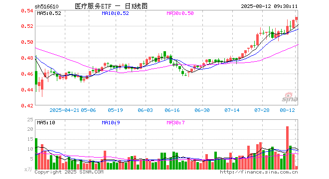 医疗服务ETF(516610)开盘涨0.00%,重仓股迈瑞医疗涨0.00%,联影医疗跌0.15%