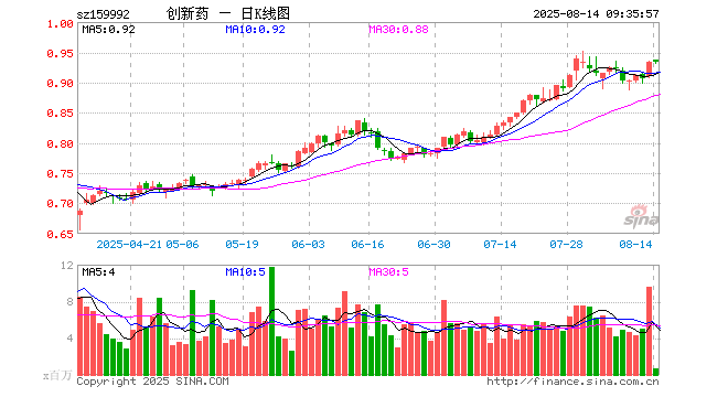 8月14日,创新药ETF(159992)开盘涨0.32%,报0.937元。创新药ETF(159992)重仓股方面,药明康德开盘涨0.90%,恒瑞医药涨0.38%,科伦药业涨0.30%,华东医药涨0.07%,长春高新跌0.01%,复星医药跌0.07%,泰格医药涨1.74%,信立泰涨0.00%,百济神州涨1.37%,通化金马涨0.47%。