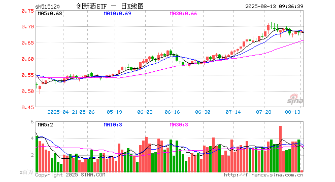 8月13日,创新药ETF(515120)开盘跌0.15%,报0.680元。创新药ETF(515120)重仓股方面,药明康德开盘涨0.66%,恒瑞医药涨0.00%,科伦药业涨0.03%,华东医药涨0.00%,长春高新涨0.02%,复星医药涨0.00%,泰格医药涨0.72%,百济神州涨0.03%,信立泰跌0.47%,通化金马跌0.49%。
