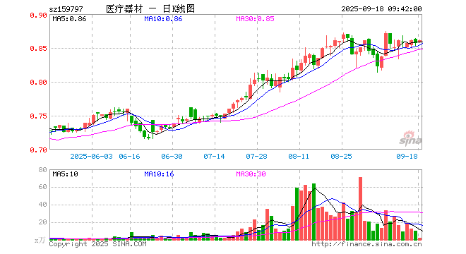 医疗器械ETF基金(159797)开盘涨0.23%,重仓股迈瑞医疗涨0.25%,联影医疗跌0.46%