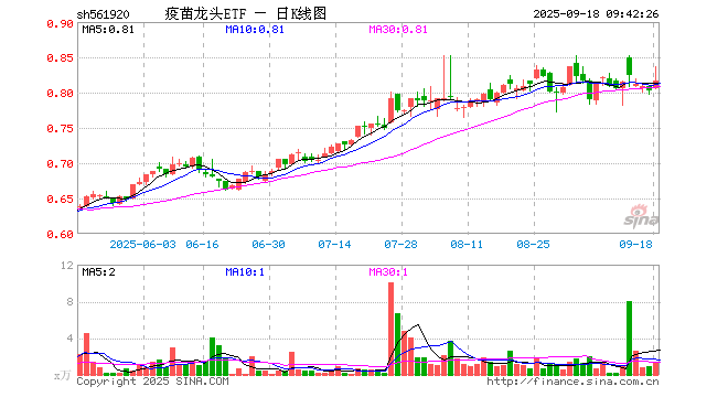 9月18日,疫苗龙头ETF(561920)开盘涨0.37%,报0.806元。疫苗龙头ETF(561920)重仓股方面,智飞生物开盘涨2.66%,万泰生物跌0.25%,沃森生物涨0.32%,康泰生物涨0.84%,辽宁成大跌0.08%,山东药玻涨0.00%,君实生物涨0.74%,复星医药涨0.16%,华兰生物跌0.06%,甘李药业跌0.26%。