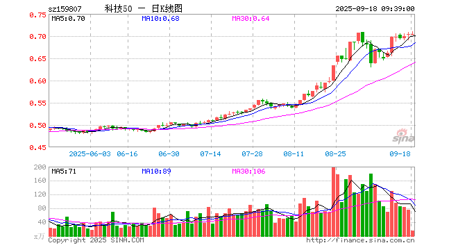 科技ETF(159807)业绩比较基准为中证科技50指数收益率,管理人为易方达基金管理有限公司,基金经理为张湛,成立(2020-03-16)以来回报为40.86%,近一个月回报为22.42%。