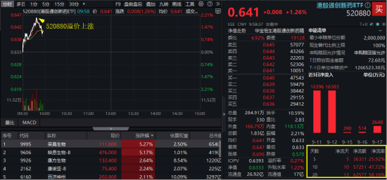 9月18日早盘,港股通创新药板块终于反弹!港股通创新药ETF(520880)100%布局创新药研发公司,开盘后一度冲高逾2%,仅20分钟成交额突破1亿元。