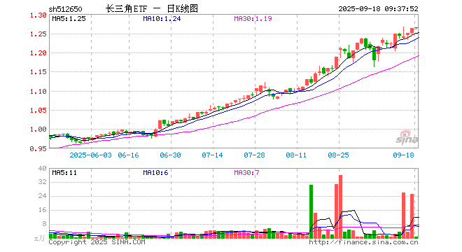 9月18日,长三角ETF(512650)开盘涨0.16%,报1.265元。长三角ETF(512650)重仓股方面,东方财富开盘跌1.10%,药明康德涨0.16%,国泰海通涨0.21%,恒瑞医药涨0.61%,江苏银行涨0.29%,阳光电源跌0.70%,新和成涨0.00%,交通银行涨0.28%,沪电股份跌1.07%,三花智控涨2.65%。
