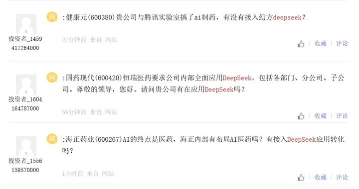 近期,中国企业深度求索(DeepSeek)开发的大模型DeepSeek-R1引发AI业内震动,亚马逊AWS、微软Azure等都宣布接入DeepSeek-R1模型。在DeepSeek大火的背景下,也有医药健康企业也被投资者追问应用情况,但目前并未有公司像恒瑞医药有明确的消息。例如,信邦制药在2月5日回答投资者提问时称,公司将持续关注新技术在医疗领域的发展,并积极探索新技术在公司业务上的运用。