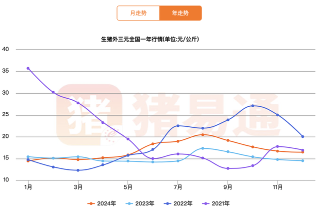 2024年猪肉的整体价格实事求是地看并不算高,最高点落在8月中旬20元/公斤,从3月左右开始涨,慢慢涨到8月,整个上行期不算长,全程也就5个多月,触顶后没多久就回落,目前猪价又掉到了16元/公斤左右,你非要说又走完一个猪周期,勉强算,嗨,小小小小周期走一个吧。