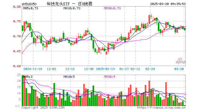 3月20日,科技龙头ETF(516050)开盘涨0.14%,报0.726元。科技龙头ETF(516050)重仓股方面,恒瑞医药开盘跌0.19%,中芯国际涨0.05%,京东方A涨0.46%,迈瑞医疗跌0.05%,海光信息跌1.20%,中兴通讯涨0.03%,北方华创跌0.23%,海康威视涨0.03%,中际旭创涨0.30%,中科曙光涨0.00%。