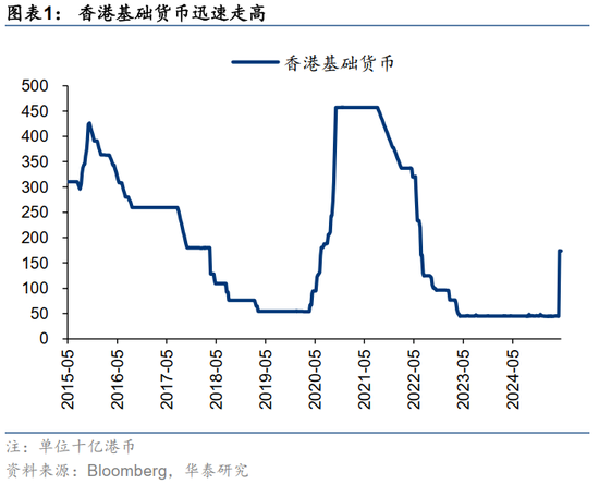 在中美贸易摩擦升温又快速降温的2025年,港股市场显得异常热闹。年初DeepSeek行情引爆科技股投资热潮,随后外资持续流入香港触发联汇制度下的强方兑换保证,5月3日至6日,金管局向市场注入1294亿港元,银行体系总结余激增至1740亿港元,导致港元流动性短期宽松。这一背景下,港元拆息显著下行,1个月期拆息从4月的3.65%骤降至0.96%,带动按揭利率等挂钩产品同步走低。香港融资流动性和金融条件阶段性大幅转松。