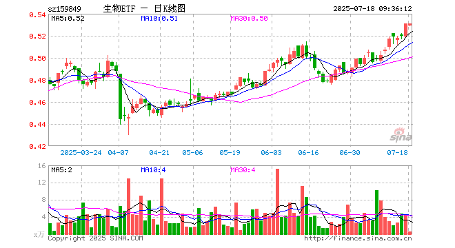 生物科技指数ETF(159849)业绩比较基准为中证生物科技主题指数收益率,管理人为招商基金管理有限公司,基金经理为房俊一,成立(2021-02-08)以来回报为-46.92%,近一个月回报为8.26%。