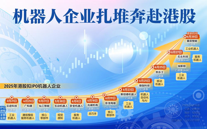 据记者不完全统计,今年以来,至少有13家机器人公司向港交所递交上市申请,这批拟上市的企业中,有9家在今年6月递交了上市申请。