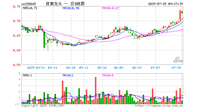 7月25日,疫苗ETF富国(159645)开盘跌0.54%,报0.732元。疫苗ETF富国(159645)重仓股方面,复星医药开盘涨0.04%,长春高新涨0.02%,智飞生物涨1.57%,万泰生物跌0.15%,沃森生物涨1.51%,华兰生物跌0.71%,丽珠集团涨0.00%,辽宁成大涨0.00%,康泰生物跌1.64%,药明康德涨0.00%。