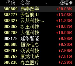 康泰医学20%涨停,正川股份、汉王科技、延华智能等多股涨停。