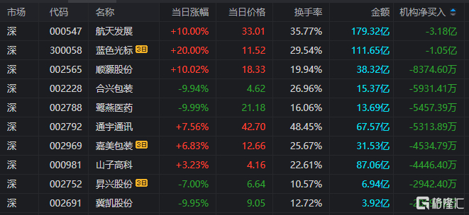 龙虎榜 | 机构、深股通齐抛航天发展,三大游资8亿封板蓝色光标