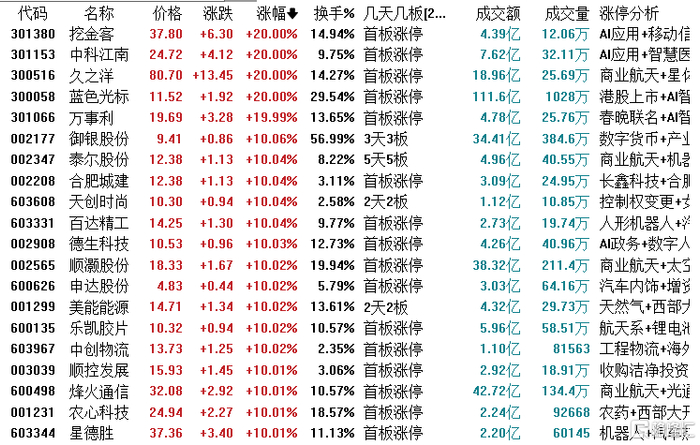 部分榜单个股题材: