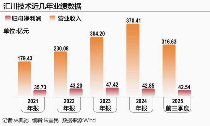 2025年前三季度,汇川技术营业收入316.63亿元,同比增长24.67%;归母净利润42.54亿元,同比增长26.84%。