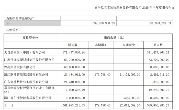 记者还发现,家居行业内,兔宝宝除了作为板材供应商享有较高知名度以外,还以产业投资见长。公司2025年半年报披露,公司持有悍高集团(SZ001221)、联翔股份(SH603272)等公司的股份,此外,还投资了豪德数控、佳饰家、喜尔康等公司,这些企业也正向上市发起冲击,它们或已提交IPO申请,或已启动上市辅导。