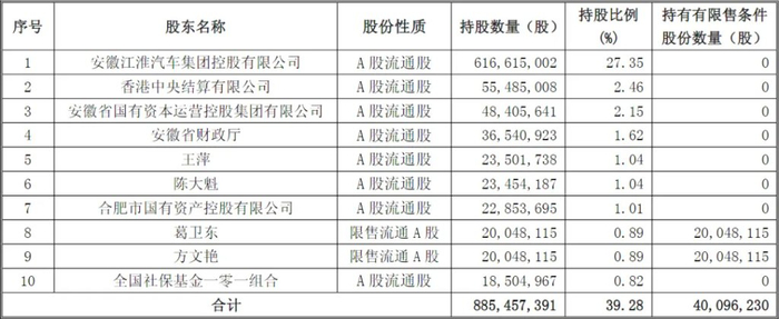 需要说明的是,葛卫东另一名关联人葛贵莲,截至2025年三季度末,持有江淮汽车1661.62万股,位居该公司第九大股东。