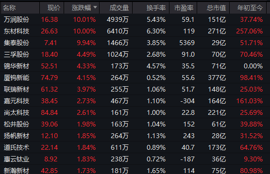 化工板块异动拉升,万润股份、东材科技、集泰股份直线拉涨停。