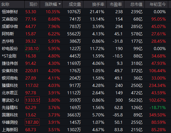此外,半导体板块震荡拉升,圣晖集成实现2连板,创历史新高,恒坤新材、艾森股份、成都华微等跟涨。