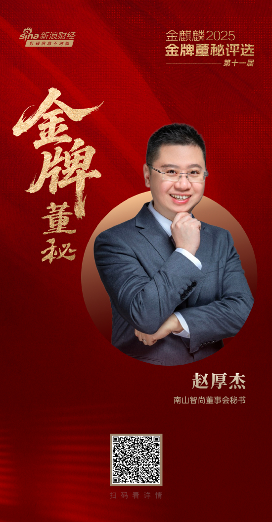 本届荣获金麒麟·金牌董秘称号的南山智尚董秘赵厚杰,正是这一群体中的杰出代表。该荣誉不仅体现了其个人在资本沟通、合规治理与战略协同方面的卓越能力,也反映了市场和投资者对南山智尚治理水平与价值成长的高度认可。
