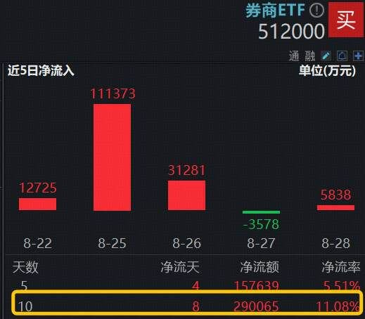 头部券商中报密集报喜,净利最高增58%!东方财富重回A股成交榜首,顶流券商ETF(512000)10日吸金超29亿
