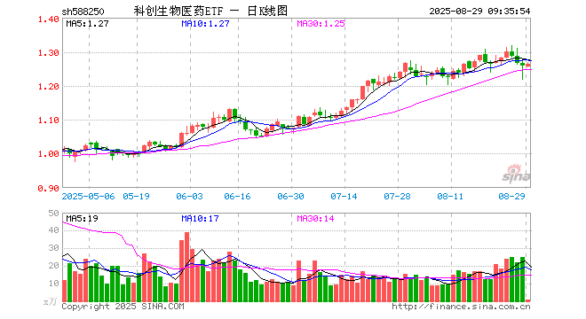 科创生物医药ETF(588250)业绩比较基准为上证科创板生物医药指数收益率,管理人为鹏华基金管理有限公司,基金经理为林嵩,成立(2025-03-12)以来回报为26.24%,近一个月回报为2.08%。