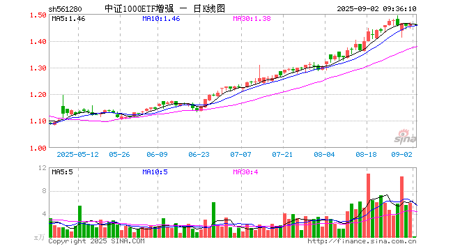 9月2日,中证1000ETF增强(561280)开盘涨0.00%,报1.463元。中证1000ETF增强(561280)重仓股方面,湘电股份开盘跌0.06%,皓元医药跌0.27%,新强联涨0.00%,楚江新材涨0.10%,南威软件跌0.30%,臻镭科技涨0.00%,振芯科技涨0.04%,应流股份涨2.09%,虹软科技跌2.34%,博俊科技跌0.07%。