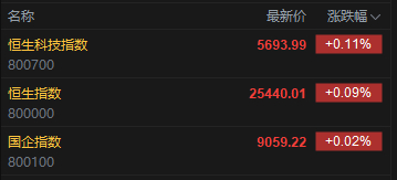 今日港股三大指数集体高开,恒生指数涨0.09%,报25440.01点,恒生科指涨0.11%,国企指数涨0.02%。盘面上,科网股涨跌不一,百度涨超2%,阿里巴巴涨超1%,快手跌超0.5%;创新药概念高开,药明康德涨超3%;黄金、有色金属板块走高,山东黄金涨超4%;光伏太阳能股延续涨势,卡姆丹克太阳能涨15%;中资券商股活跃,广发证券涨超1%;内房股普遍上涨,碧桂园涨超14%。