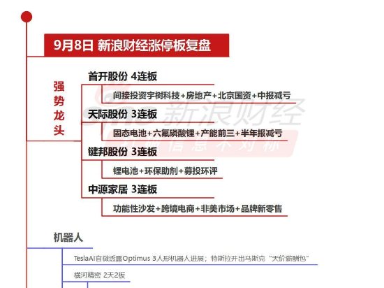 【9月8日沪深两市涨停分析】沪指放量上涨0.38%,两市上涨个股超3900只,人形机器人概念持续爆发。首开股份4连板,一图看懂>>