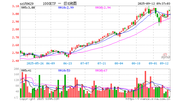 1000ETF(159629)开盘涨0.33%,重仓股欧菲光跌1.32%,通化金马跌1.97%