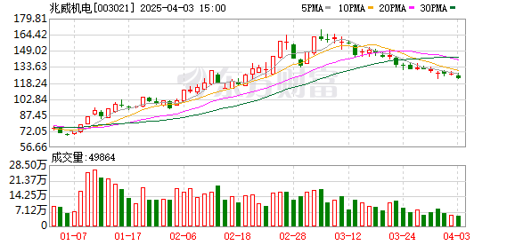 截至4月3日收盘,兆威机电股价报122.20元/股,跌幅达3.55%,总市值为293.5亿元。截至2024年9月30日,公司股东人数为2.296万户。