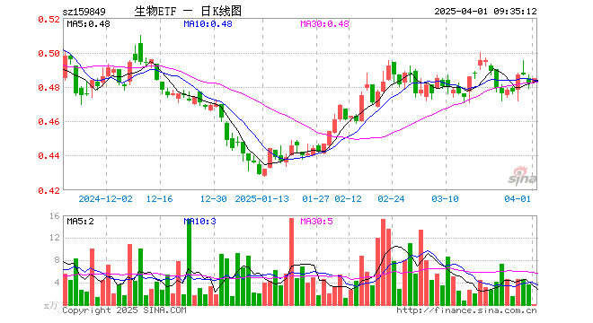 生物科技指数ETF(159849)开盘涨0.00%,重仓股迈瑞医疗涨0.42%,恒瑞医药涨0.00%