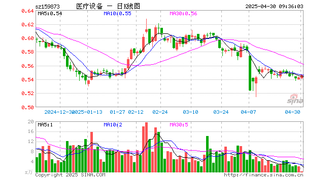 医疗设备ETF(159873)开盘跌0.37%,重仓股迈瑞医疗跌0.16%,爱尔眼科涨0.00%