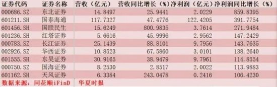 《华夏时报》记者通过同花顺iFinD统计进一步发现,超八成券商净利润呈现双位数增长,最低增幅超过10%,9家券商净利润翻倍(包括扭亏为赢)。
