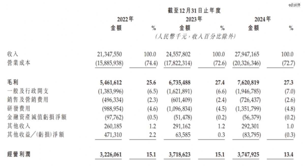 根据招股书,三花智控的收入主要来自制冷空调电器零部件和汽车零部件两部分,2024年分别贡献49.3%和40.7%。具体来看,2022年-2024年,营收分别为256.1亿元、245.6亿元、279.5亿元,同期净利润分别为26.08亿元、29.34亿元、31.12亿元。