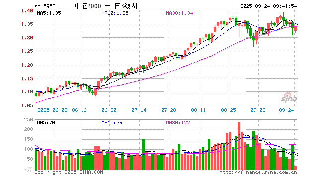 中证2000ETF(159531)业绩比较基准为中证2000指数收益率,管理人为南方基金管理股份有限公司,基金经理为李佳亮,成立(2023-09-07)以来回报为33.60%,近一个月回报为-1.35%。