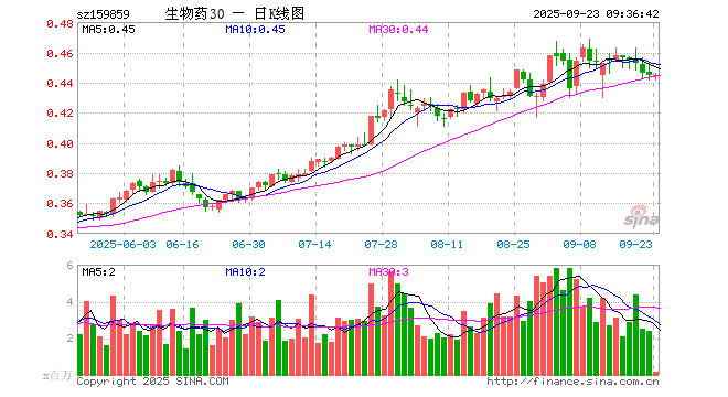 9月23日,生物医药ETF(159859)开盘跌0.22%,报0.444元。生物医药ETF(159859)重仓股方面,药明康德开盘跌0.49%,上海莱士跌0.30%,复星医药跌0.03%,长春高新跌0.29%,泰格医药跌0.02%,爱美客跌0.46%,康龙化成跌0.71%,百利天恒跌0.98%,智飞生物跌0.46%,万泰生物跌0.04%。