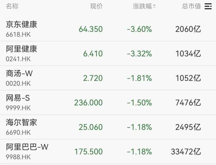 港股方面,三大指数震荡调整,京东健康、阿里健康均跌超3%。