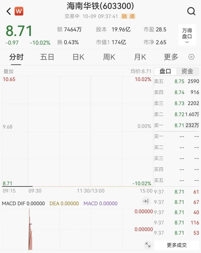 36.9亿元算力大单告吹,海南华铁一字跌停,232万手封死跌停。